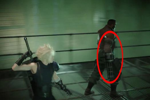为什么这么说呢?因为巴雷特的武器盖住了他的小臂,而这一部分是可以进行切换和定制的。这一点应该和《最终幻想7:圣子降临》一脉相承,在电影中巴雷特的胳膊可以通过附加武器而变成一挺威力巨大的激光枪。