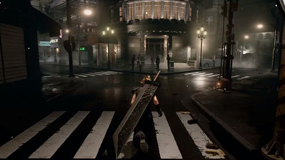 上面这张截图同样来自于《最终幻想7重制版》的预告片,它向我们展示了克劳德在米德尔加大街上奔跑的场景,这或许能给我们关于这座都市的一个直观印象。不过,如果我们仔细观察就会发现,图中场景的景深实际上都比较短。