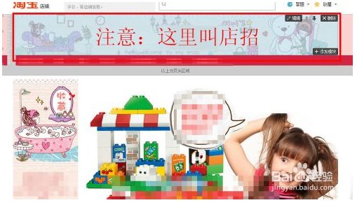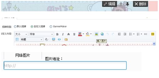 首先编辑店招,选择插入图片,把我们之前做好的店招插进来。(一般是直接使用绘图软件在模板包里面的店招图上写店名,然后上传到自己的图片空间)