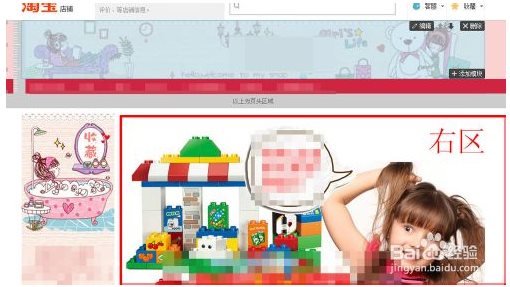 我这里是基础版做例子,首先要了解一下分区的概念,一般我们下载好的模板都是如图2所示这样的。分为左区,右区,还有店招几块。