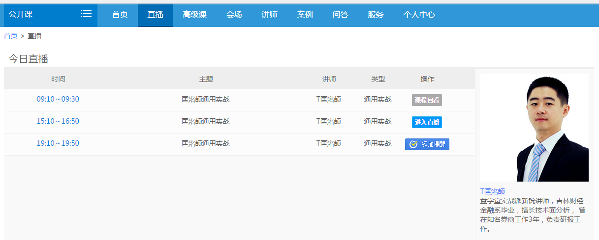 2、实盘直播:每日6档益学导师直播课,晚间10分钟专家解盘,直播提醒,支持最近一周回放。