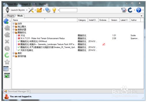 安装后,选择离线模式,就是中间的那个选项。0.51的话,不用选择,会直接打开。主页面如下图,第一张是插件部分,用于挂载部分mod和调整mod的顺序(因为挂载不同mod时,需要照看它们的顺序,不然容易造成游戏跳出。)第二张,是用于加载mod安装包,可以实现mod的分类管理与安装卸载(这就是nmm的好处,易于管理)