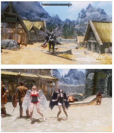 贴几张我游戏中的画面。其中包含的是翅膀mod,独立随从mod,高跟鞋mod,服装mod,武器mod,舞蹈mod等。