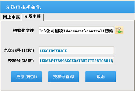 正确输入光盘ID号码和授权号码(ID号码和授权号码在国税局下发的注册文件中所包含的txt文件中),点击按钮,系统会自动完成初始化工作,提示“添加企业成功”