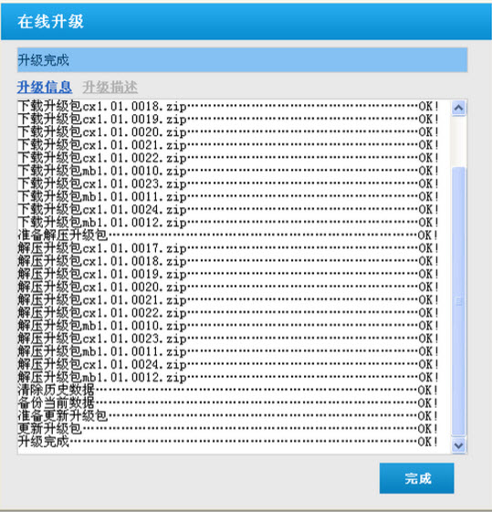 选择从税务局拷贝的升级文件,选中后,点击按钮进行升级。升级完后点击“完成”退出界面。