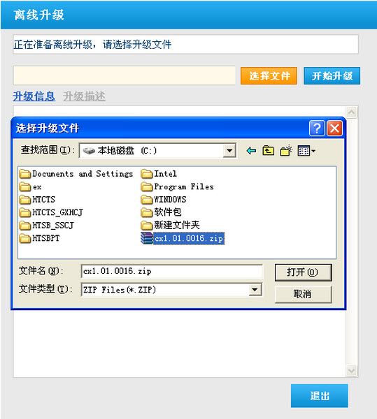 选中离线升级,点击“确定”,进入离线升级设置界面。