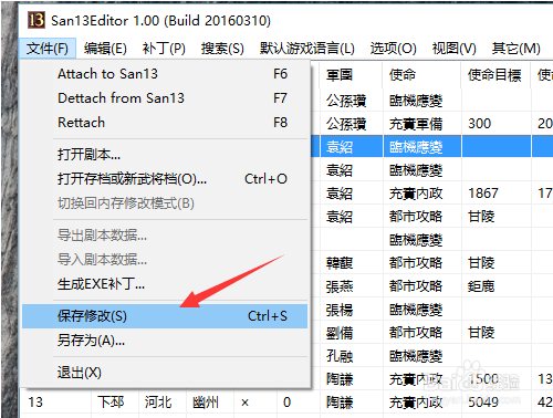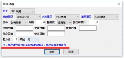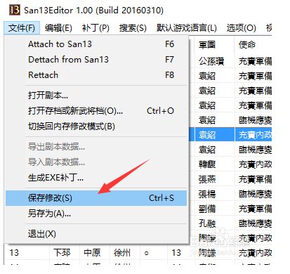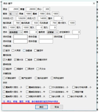 但是,此方法不能修改君主、都督、重臣、所属、身份等等数据,要修改这些,要用下面的方法:修改存档的方法