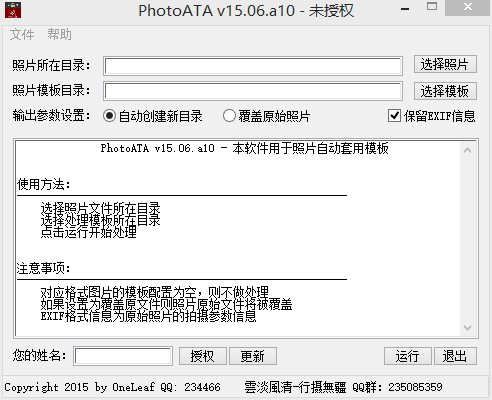 PhotoATA是一个专业的数码照片模板精细化处理软件,完全免费无插件无需安装,它可以完全自定义模板,自动完成图像的缩放,可无限层叠加图像,保留原始照片的EXIF拍摄信息,且可以将EXIF信息及任意文本叠加到照片上。藉由你的想像力让PhotoATA创建符合要求的照片,PhotoATA处理引擎可适应各种比例尺寸的数码照片,以叠加任意内容在照片上,包括照片拍摄参数以及指定的内容,通过PhotoATA创建的照片可以方便的分享到网络上。PhotoATA不对原始图像进行任何修改,旨在创建个性化的高质量合成图像。