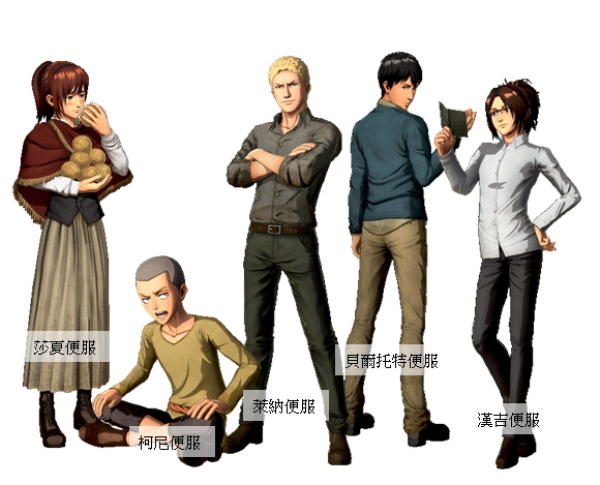 所有首批购买的玩家都将获得艾伦和利威尔的便服下载码。而预购了数字版的玩家可额外获得尤弥尔和赫里斯塔的便服下载码。选择购买数字豪华版的玩家将获得追加的20套服装。