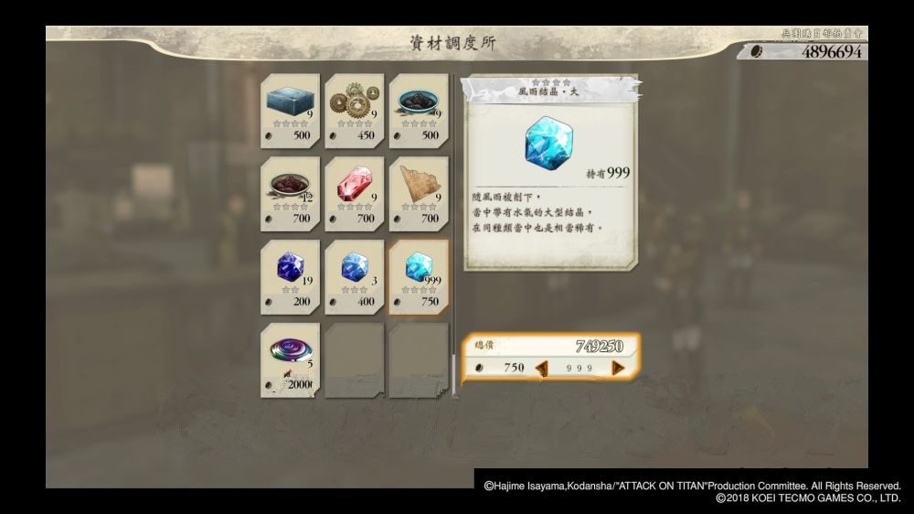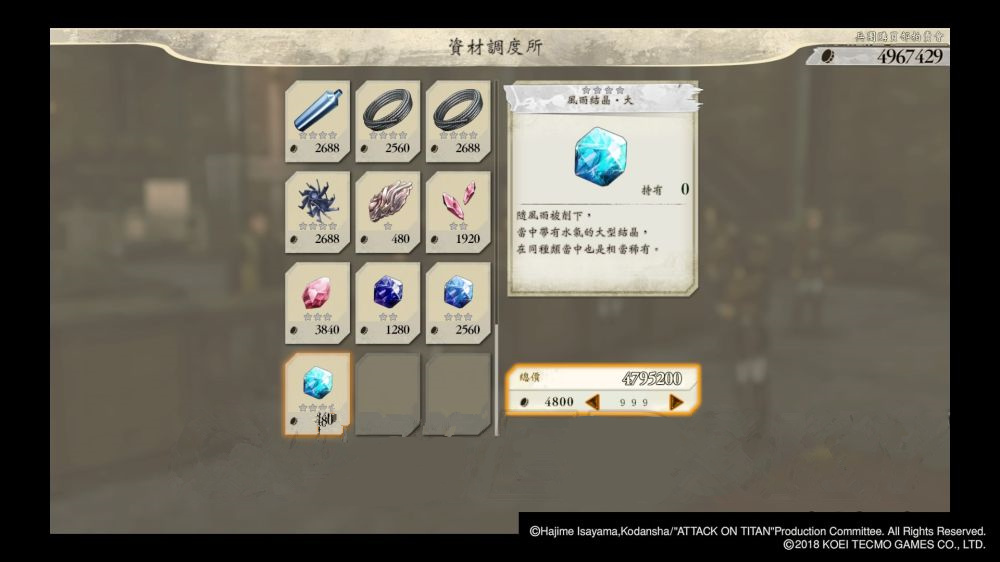 4、去兵团购买部买999个风雨结晶?大,此时由于BUG只会花70,735(原贴视频演示花了40多W,他是1.02版前,我是1.02版,可能风雨结晶?大的原价在更新后降了)。