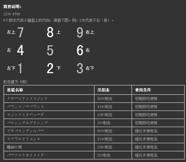 3,未设键位时,打击=Z,轻射击=X,重射击=C,A=飞行,切换卡片=S,使用卡片=D。