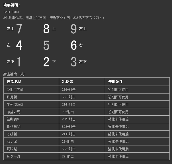 如:J2B-空中下B214-↓↙←(按↓←即可)