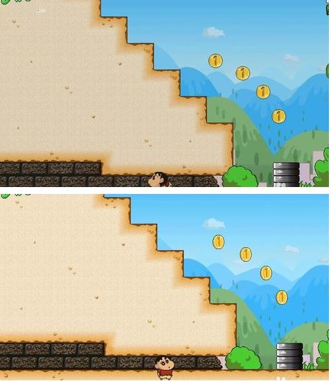 友情提示:不要让小新的移动速度超过屏幕的移动速度,不然有可能在前面掉出墙外去。。