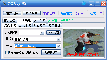 比如我选择盲僧的李青,点右边可以预览,点下面就能应用了。