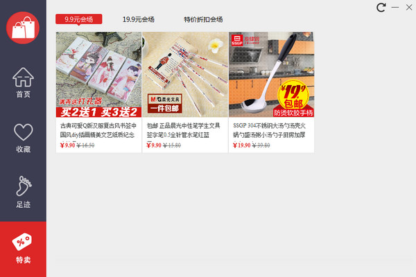 2、点击特卖,我们可以看到这里有一个特卖的会场,如果有需要的大家就可以买到打折的商品了