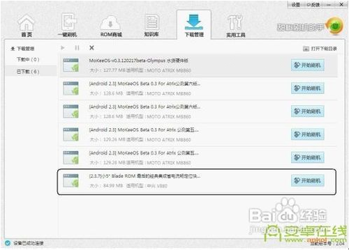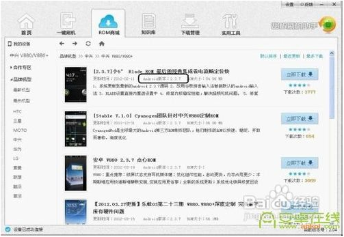 五、在进入ROM商城,软件会直接显示当前连接手机匹配的ROM资源,只需要选择想要升级的ROM立即下载。这里会显示每个ROM版本、大小、更新时间,点击ROM标题,还可以看到ROM特性和详细截图。