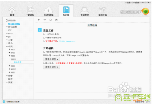 若刷机失败,可以根据提示重新刷一次或者换个ROM包重刷,还可以使用救砖教程,恢复系统官方ROM,按照教程详细操作,下载教程中提到的官方固件,将 image.bin拷贝到SD卡根目录的Image文件夹,长按菜单键+上音量键+电源键,刷入成功,重启就OK啦。