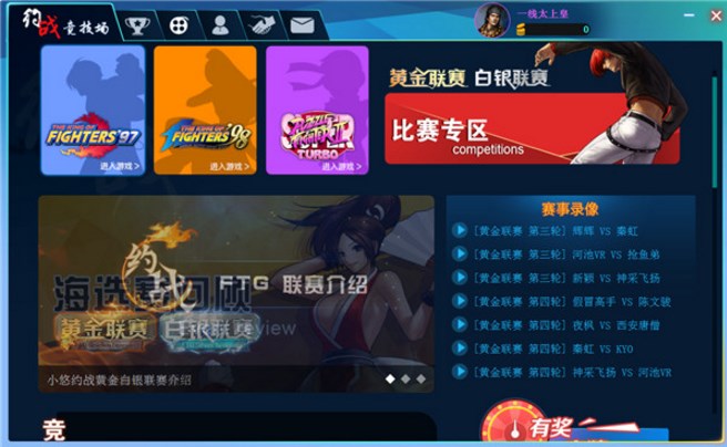 为了增加游戏的竞技性和趣味性,约战竞技场还专门邀请了国内一些知名格斗游戏高手入驻,举办为期三个月的《拳皇97》全国黄金联赛和白银联赛,邀请了十多位国内技术顶尖的玩家,以及熊猫、斗鱼等直播平台上人气最旺的《拳皇97》的游戏主播。快来挑战吧!与此同时,约战竞技场将陆续开展线上线下竞技