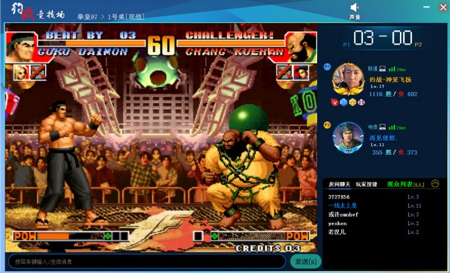 约战竞技场首批竞技格斗游戏包括有《拳皇97》、《拳皇98》和《街霸方块》,无论哪一款都可以即下即玩。