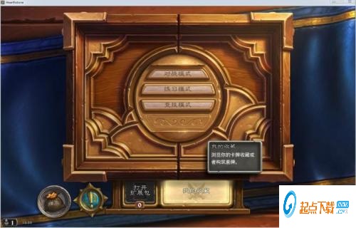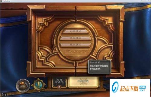 4.(注意:想使用插件功能的话,游戏一定要调整为窗口模式)进入游戏界面后,玩家们会发现炉石助手并没有弹出来,这个时候需要我们点击任何一种模式,助手就会出来了,先以查看卡牌收藏为例:
