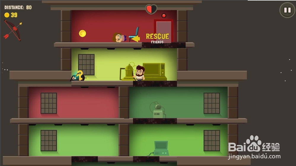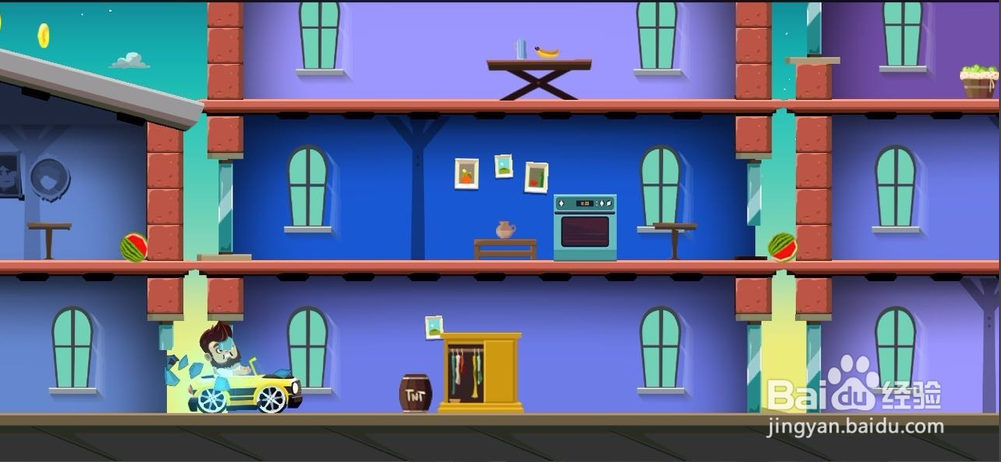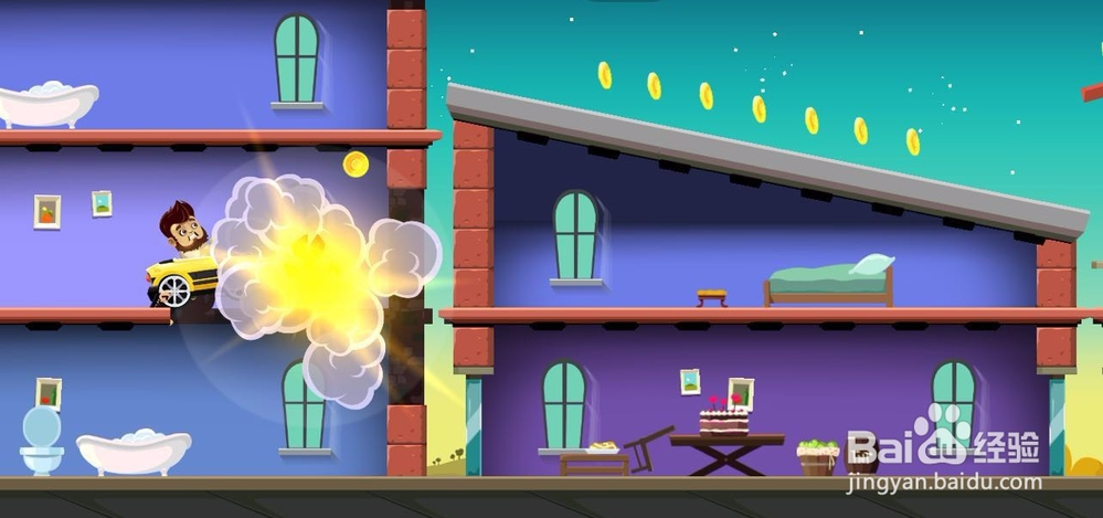 以关卡的形式表现,在大楼中的冒险通过上下滑动屏幕来穿过上下楼层,风骚的走位,不断的破坏是在楼层中蹿动的必要条件。
