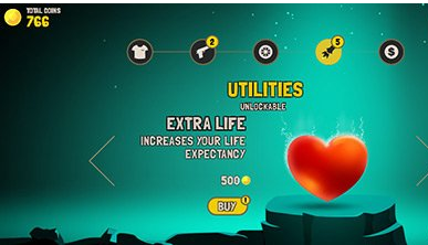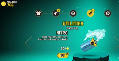 在游戏过程中收集金币,金币的功能是解锁角色的各项能力:购买速度更快的车辆,给自己换一身豪华的装备,或者是强化自己的生命值等等。而这种解锁元素的加入,也势必会让玩家消耗更多的时间在游戏中,总的来说本作是一款极易上手,上手之后就停不下来的游戏。