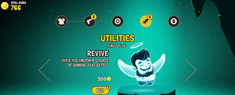 其实除了可以升级道具以及我们主角的生命之外,在我们游戏第一次被敌人干掉之后,其实我们是可以继续的,点击我们游戏下面的人物就可以了,只是需要比较多的金币。