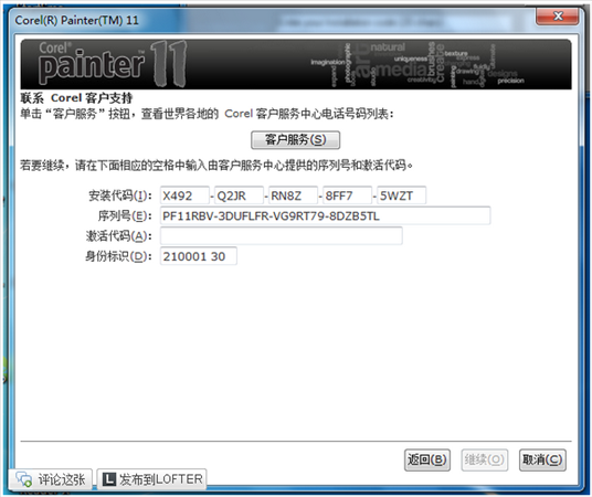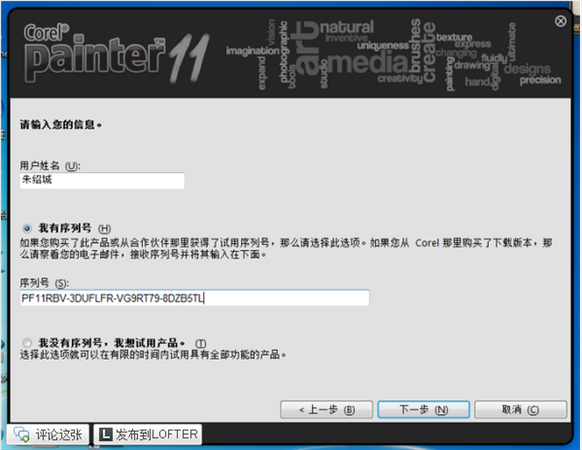2 安装painter 11 ,提示你是否有注册码,选择第一个填入刚才生成的代码。