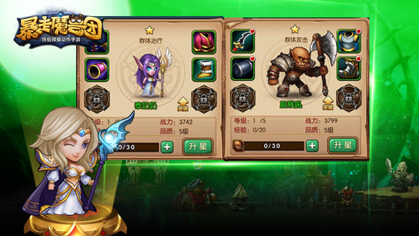 英雄是《暴走魔兽团》最不可缺少的元素。此次新版本推出各具特色的S级英雄,最强辅助英雄——泰奶奶和S品质攻击英雄——脑残吼。独一无二的S级治疗型英雄“泰奶奶”,堪称最强辅助英雄,大招“神言术盾”,可给全队加魔法护盾并吸收大量伤害,持续长达6秒钟。同时,附魔后解锁的技能可附带反弹部分伤害的效果。
