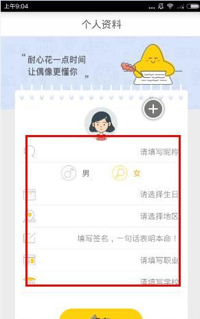 2、进入个人资料填写界面,选择性别,生日,地区,签名,职业,学校等信息点击保存按钮就可以成功注册的哟~