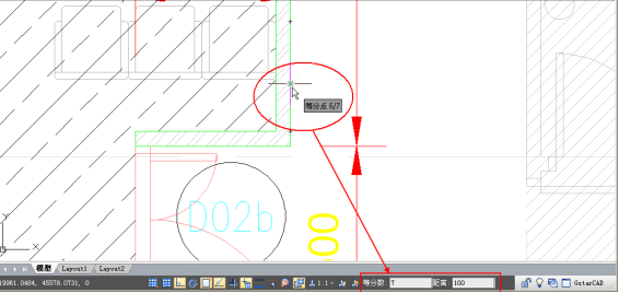 当打开等分捕捉和距端点捕捉时,浩辰CAD 2017状态栏会显示等分数和距离输入框,用户无需打开捕捉对话框就可随时调整等分数和距端点的距离,操作更方便。