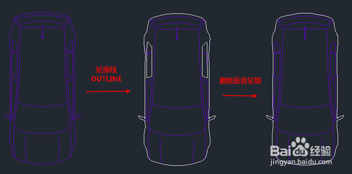 同样的汽车图块,用浩辰CAD 2017的轮廓线功能,只需选中图块,然后将多余的线删除即可,不超过10秒钟就可以完成,如下图所示。