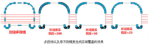 当我们已经有了图块的轮廓线后,无需再借助超级填充,直接用区域覆盖(WIPEOUT)就可以了。浩辰CAD 2017区域覆盖的默认精度比较高,是100,数值越高,圆弧段就越平滑,实际应用中可以适当降低精度,如下图所示。