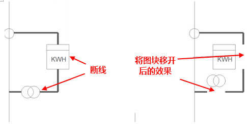 与图块相交的线将按图块计算的轮廓线被打断,打断效果如下: