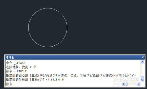 1、绘制好图块内部的图形,对于轴号来说就是一个圆,我们绘制一个半径为5的圆,如下图所示。
