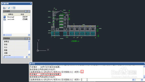 1、输入XCLIP命令,回车,选择外部参照后回车,采用默认选项<新建边界>,回车,此时会提示我们是否删除旧边界,如下图所示。