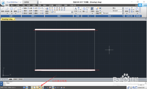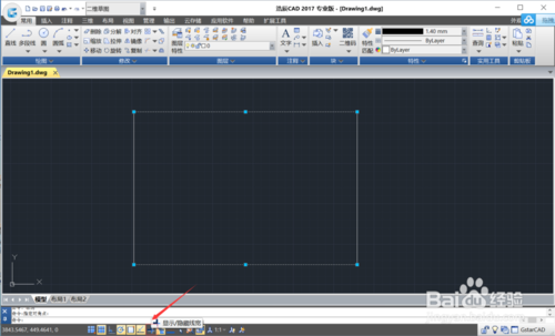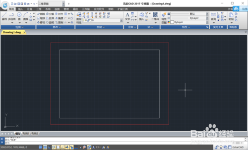 使用线段命令,画出四条线段(默认线宽),组成一个矩形。(图片上边标红出为默认线宽)