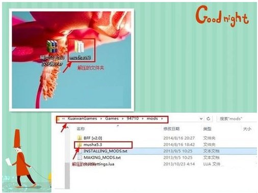 下载mod文件,一般为解压文件,解压它,把解压的文件夹放到mod文件所在文件夹(也就是“mods”这个文件夹)就可以了。
