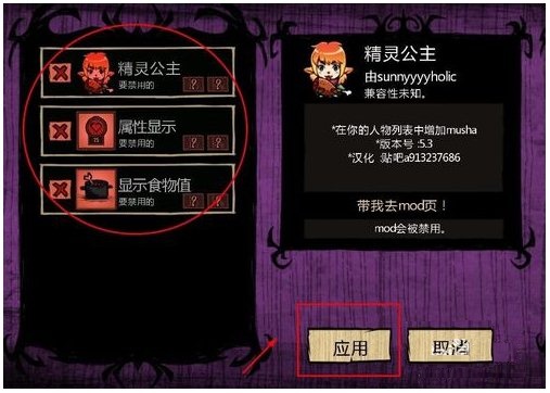 进入游戏界面,点击mods,进入mods界面后,界面右边就会有你下载的mod了,点击红叉变绿勾,再次点击下方的应用就可以了。开始游戏后,mod就开始运行了,开心的游戏吧。