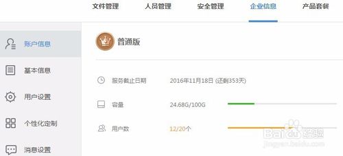 百度云企业版如何设置企业信息?1、如何查看当前企业版的服务截止时间,剩余容量及人数?