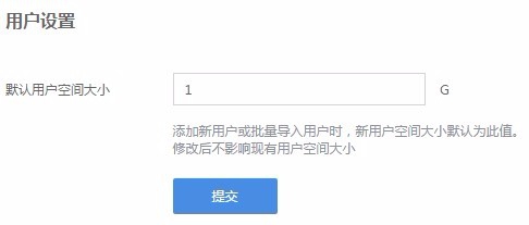 在“企业信息”中,点击左侧栏“用户设置”,显示新添加用户的默认空间大小。修改后,点击提交即可。