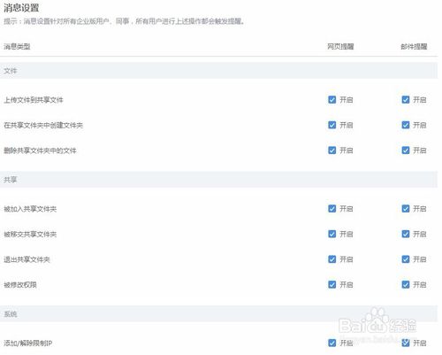 在企业版中设置各种消息动态的开启关闭,以及通知的方式。可以在邮件,网页动态,桌面客户端中自由选择。