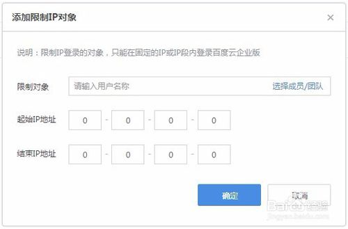 设置登录限制规则,可将选择限制的用 户,在指定IP地址段内登录。