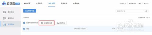1) 在“日志管理”中,左侧“登录限制”一栏,选择需要编辑登录限制的用户/团队,点击“编辑限制信息”按钮。