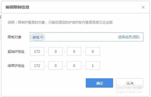 2) 编辑需要修改的限制成员或团队,及限制的起始IP及结束IP即可。
