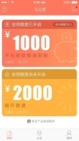 纯信用贷款,飞马贷app无需任何抵押,极速审核、秒到账、仅凭身份证和银行卡。
