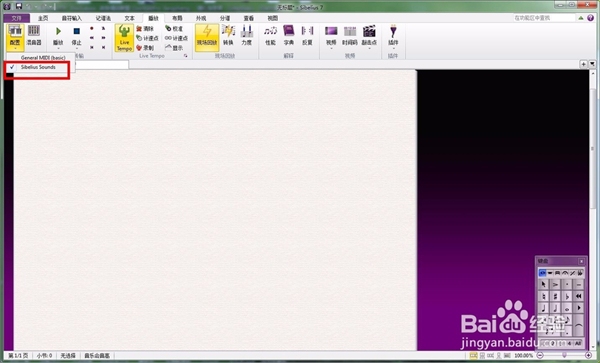 接下来打开西贝柳斯软件,然后在主界面的菜单栏选项里找到播放选项,点击进入,然后在左边有个配置选项,点击打开。