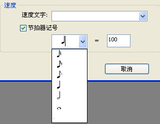 “速度文字”下面的“节拍器记号”可以调节节拍器速度,。