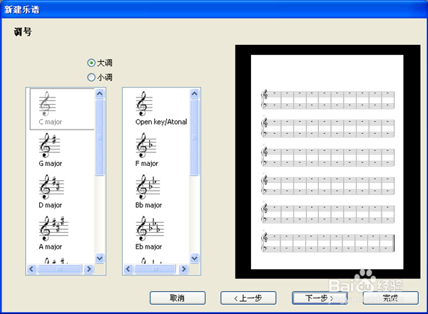 往下就是调号的设置了,直接点击框里的调号图片即可,上面一点的地方还有大小调选择的切换。