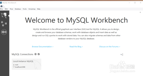首先,打开MySQL Workbench,双击打开即可。打开后的界面如下所示,然后选择数据库实例,双击进行登录。图中数据库的实例是Local instance MYSQL57